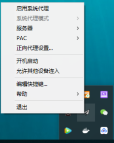 配置完成后點擊保存,并選擇右下角圖標,右鍵啟用系統(tǒng)代理。