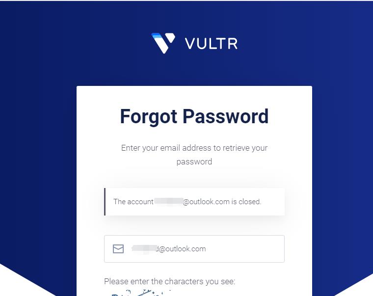 今天登陸vultr使用之前的賬號登陸,一直提示賬號和密碼錯誤,賬號和密碼確認(rèn)是沒有錯誤的。